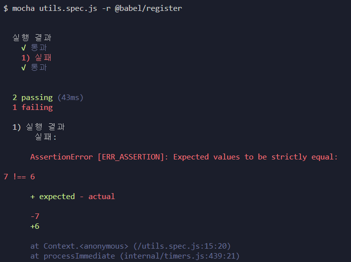 그리고 utils.spec.js에 다음 코드를 입력해주자.